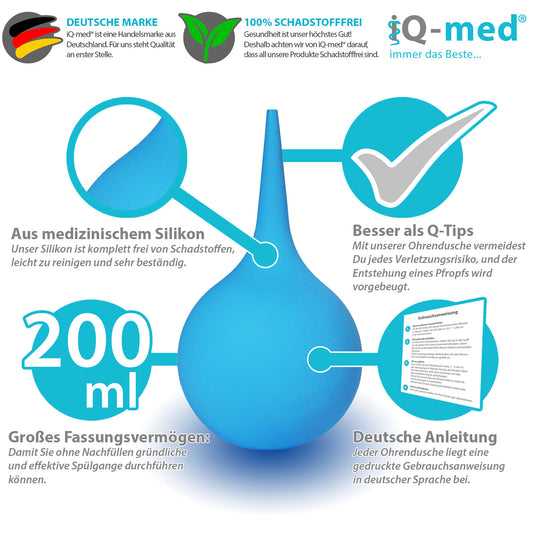 iQ-med Ohrenreiniger 200ml | Ohrenschmalzentferner aus medizinischem Silikon | Ohrendusche