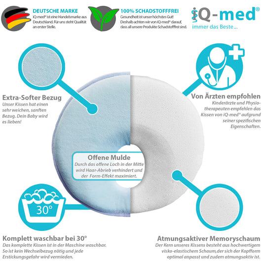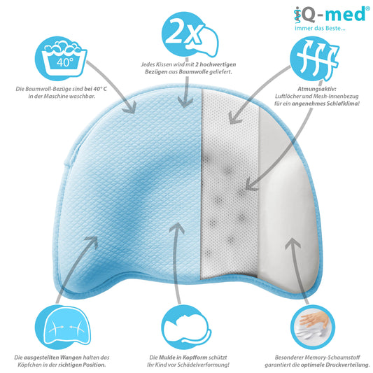 iQ-med Babykissen gegen Verformung und Plattkopf | aus viskoelastischem Schaum | passt auch im Kindersitz | Kopfkissen, Kissen für Säugling aus Memory-Schaum