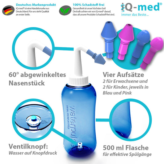iQ-med Nasendusche 500ml + 44x Salz + 4 Aufsätze, zur Nasenreinigung